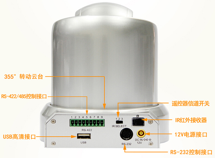 丹諾高清視頻會議攝像機DN-HDC13B10,RS232/RS485/RS422控制接口圖示: